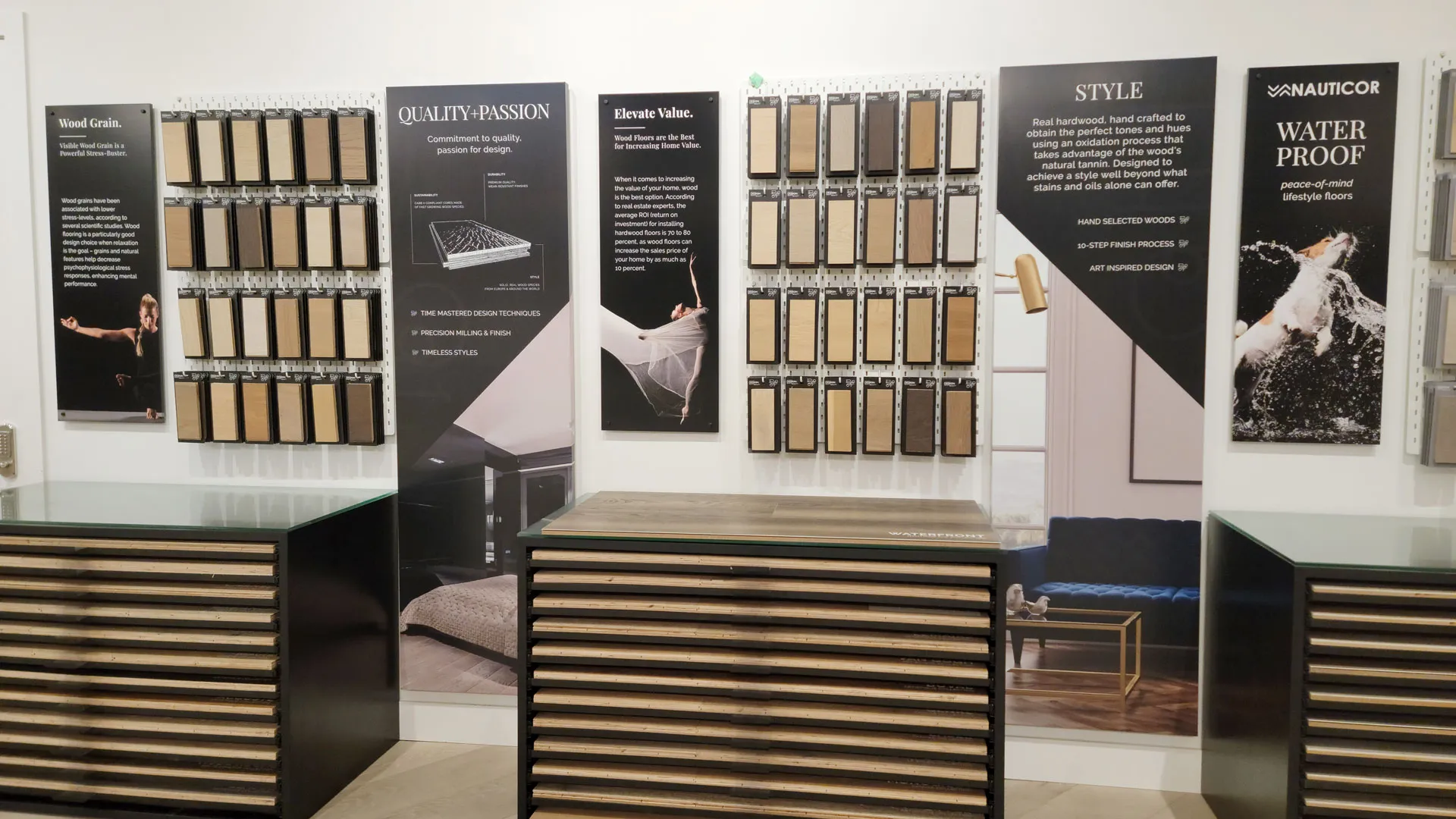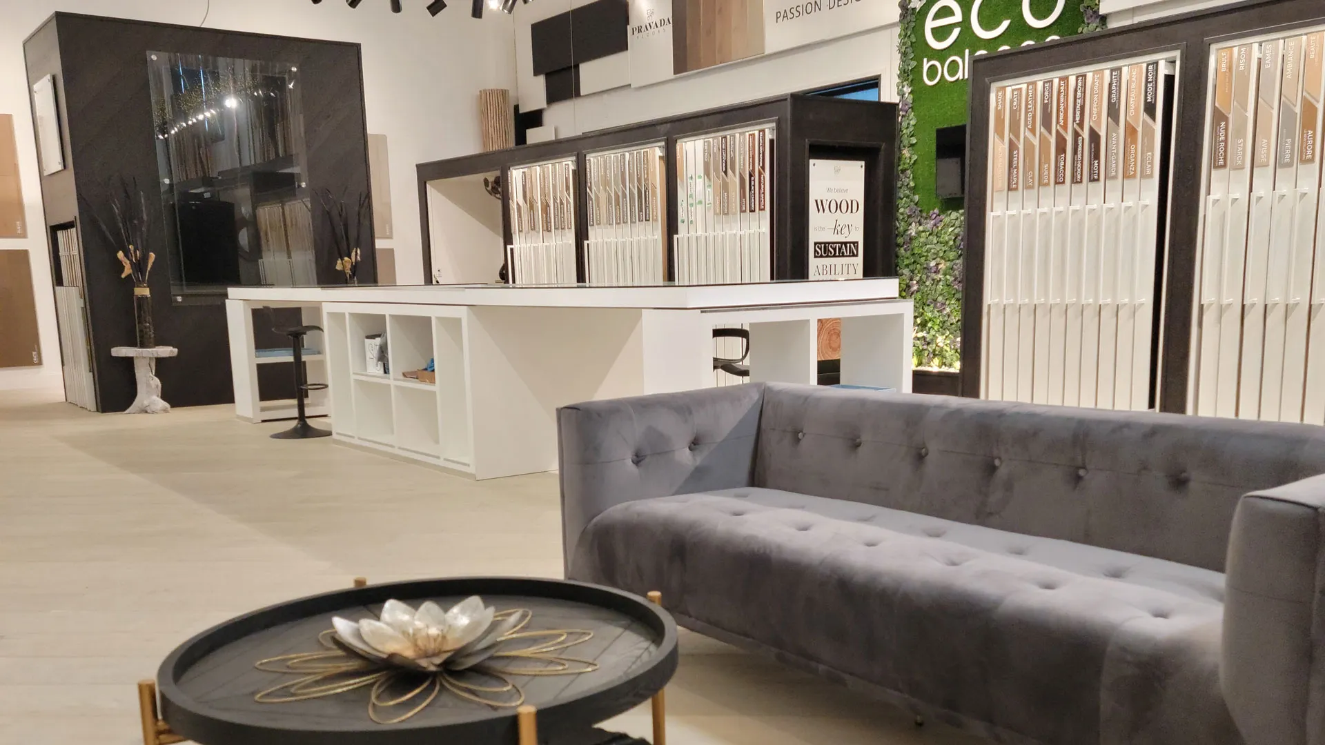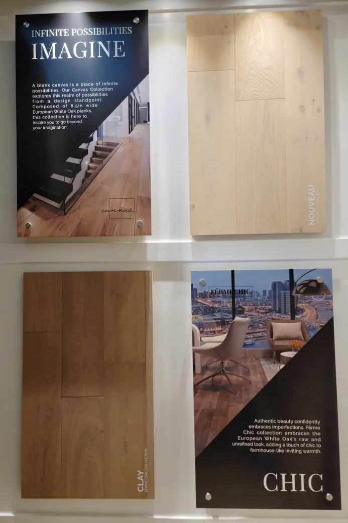 Pravada Floors is a metro Vancouver-based flooring manufacturing company. The company is known for its hardwood floors. As a team-member and their sole in-house graphic designer for 4 years, we redesigned their entire brand with the showroom being the culmination of years of brand development. For their showroom signage, we wanted to create informative content that would allow their customers (designers, dealers, and dealers' customers) to learn more about their products while addressing common questions and establishing the brand's messaging.