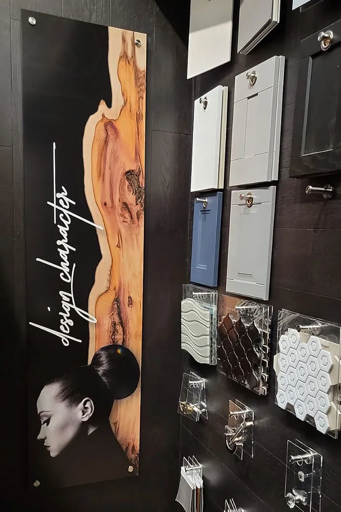 The clients had an overall idea of what they wanted concerning themes, and their placement in the showroom. It was during ideation stage that the idea of making these signs informative appeared given the size of their showroom - as a way of providing valuable content beyond meaningless visuals. Also, by the time their clients visit their showroom, they tend to be ready to make decisions so the signs had to assist them in the process.