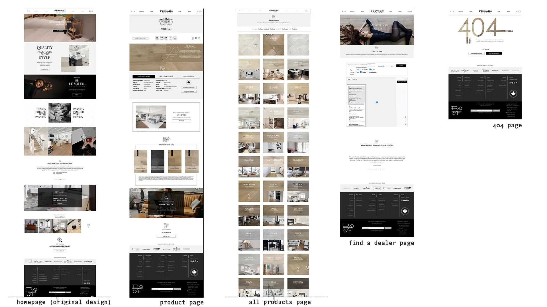 Pravada Floors is a metro Vancouver-based flooring manufacturing company. The company is known for its hardwood floors. In 2018, while I worked for them as their sole in-house graphic designer, we began the process of redesigning Pravada's website - a project that took nearly 2 years to launch, introducing me to User Interface design and highly contributing to my growth as a UI designer.