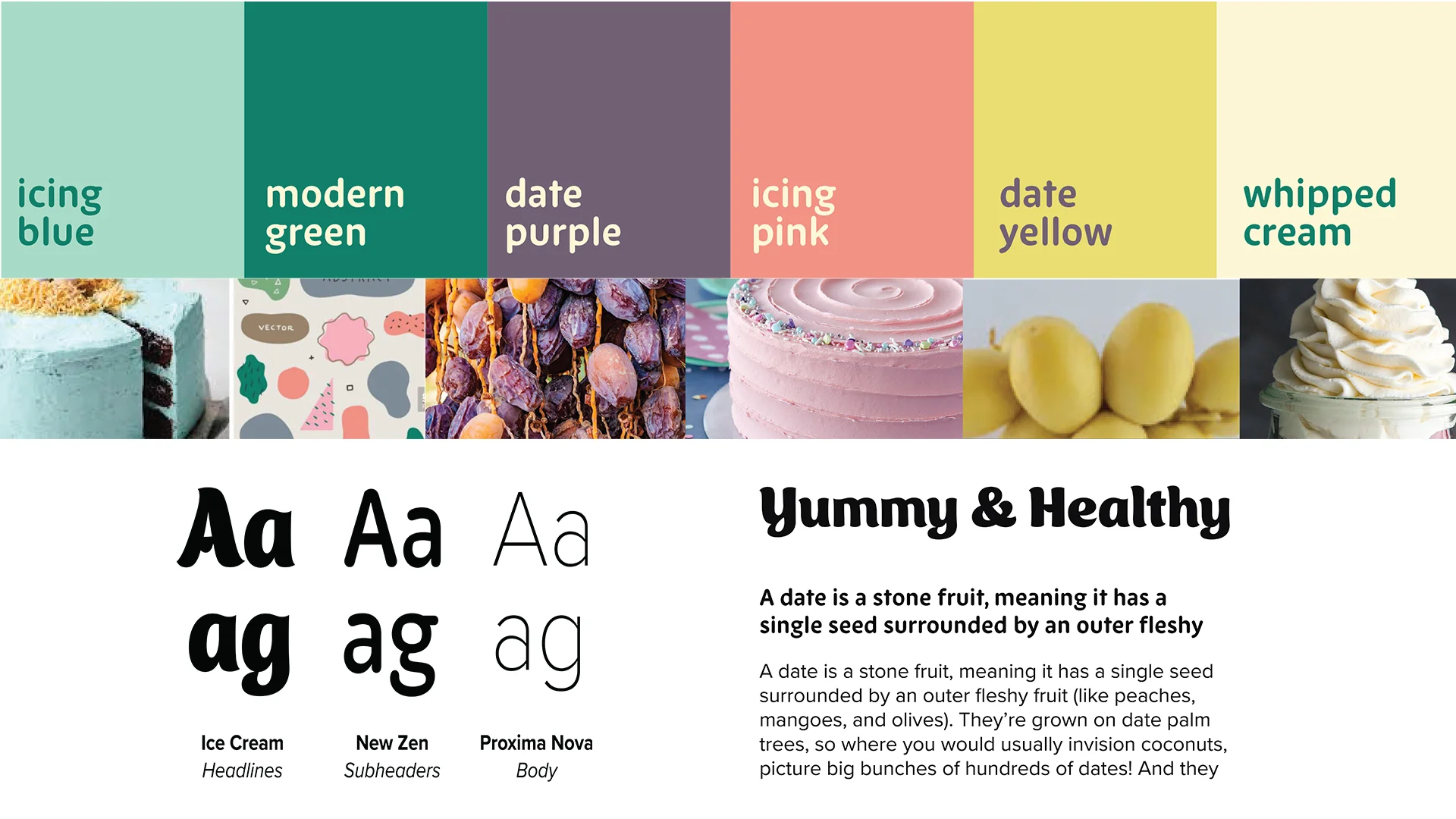 1. To supply the widest variety of date-based products at premium quality - and to clearly convey that through their branding in a modern, cute and colourful way.